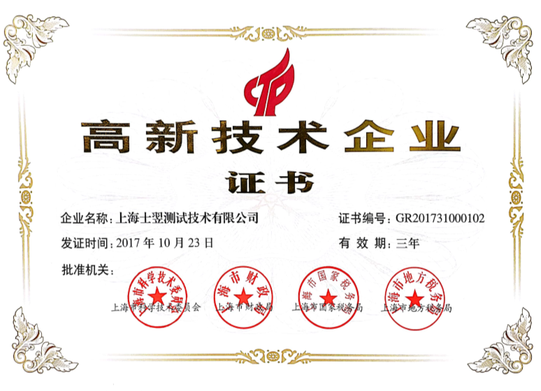 恭贺上海士翌测试技术有限公司荣获《高新技术企业证书》!